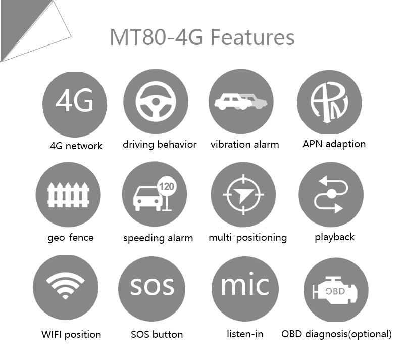 MT80-4G is the powerful vehicle tracker, it has RS232/RS485 port, SOS button, external mic which makes it able to achieve almost all the required extended functions in the market. It is highly recommended to be applied in projects OEM/ODM, big fleet management,logistics management, insurance, etc